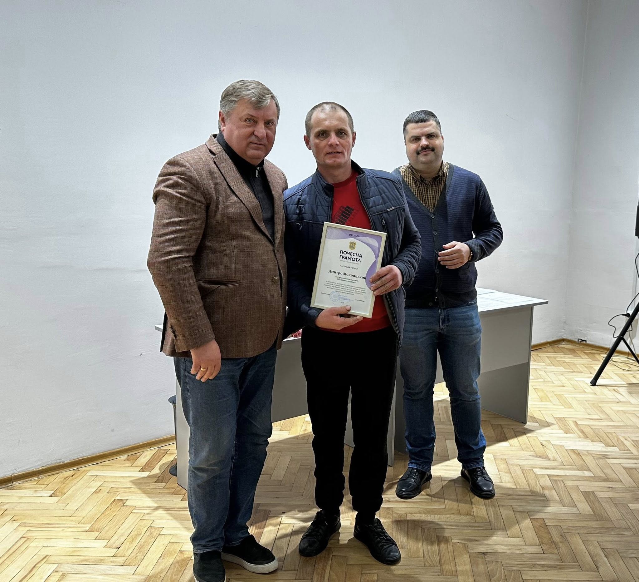 З нагоди професійних свят Дня працівників житлово-комунального господарства і побутового обслуговування населення та Дня землевпорядника міський голова Олег Канівець та його заступник Михайло Журавчак привітали та нагородили Почесними грамотами працівників управління ЖКГ та відділу земельних ресурсів Стрийської міської ради, Стрийського МККП, комунальних підприємств «УК «Комфортний Стрий», «Стрийтеплоенерго», «Стрийводоканал», «Водоканал Плюс».