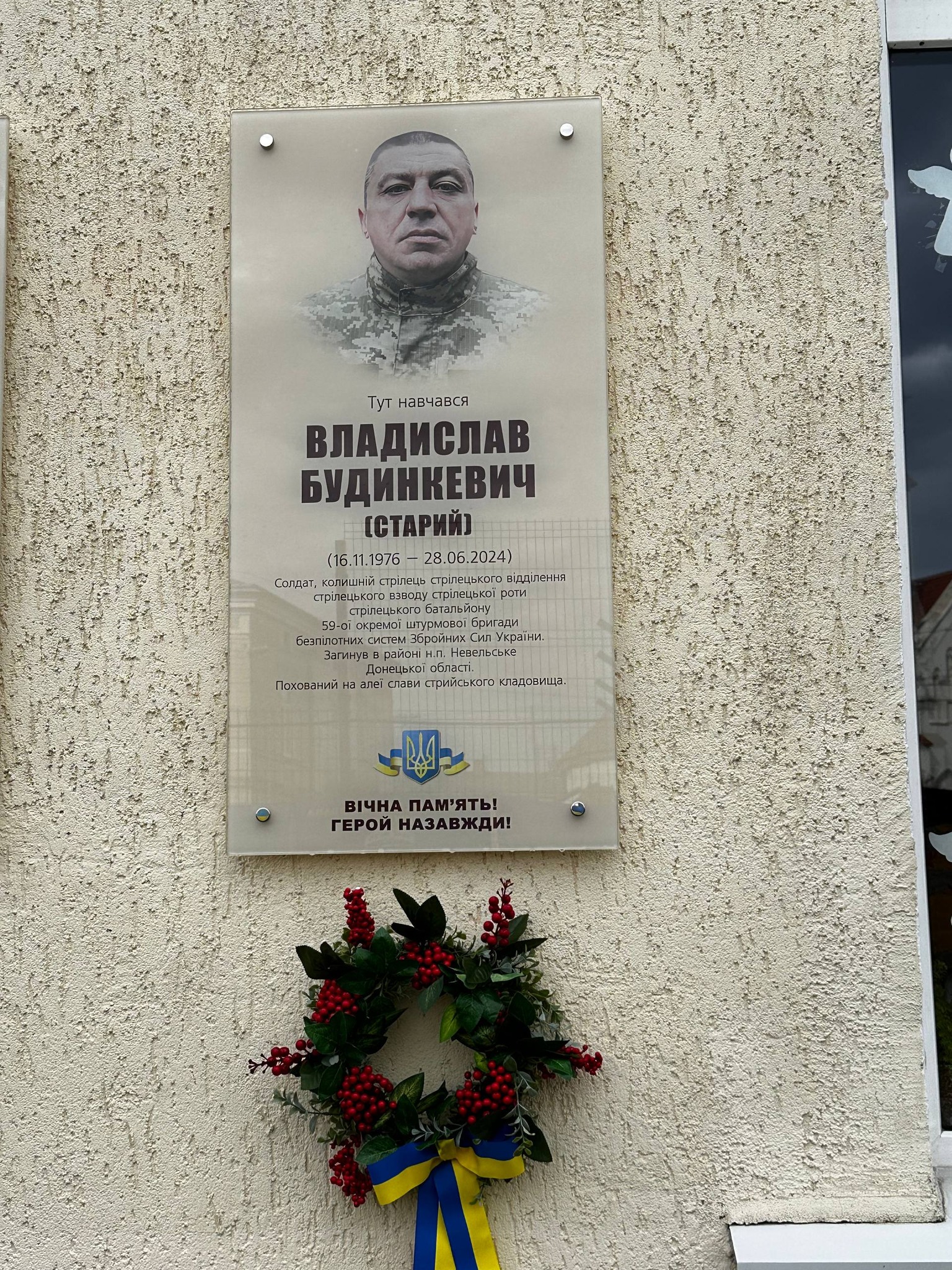 ВЛАДИСЛАВ БУДИНКЕВИЧ (16.11.1976-28.06.2024) – стрілець стрілецького відділення стрілецького взводу військової частини. У березні 2024 року був мобілізований в лави ЗСУ. 28 червня того ж року пропав безвісти в районі н.п. Невельське на Донеччині. Героя вдалося ідентифікувати за зразками ДНК.