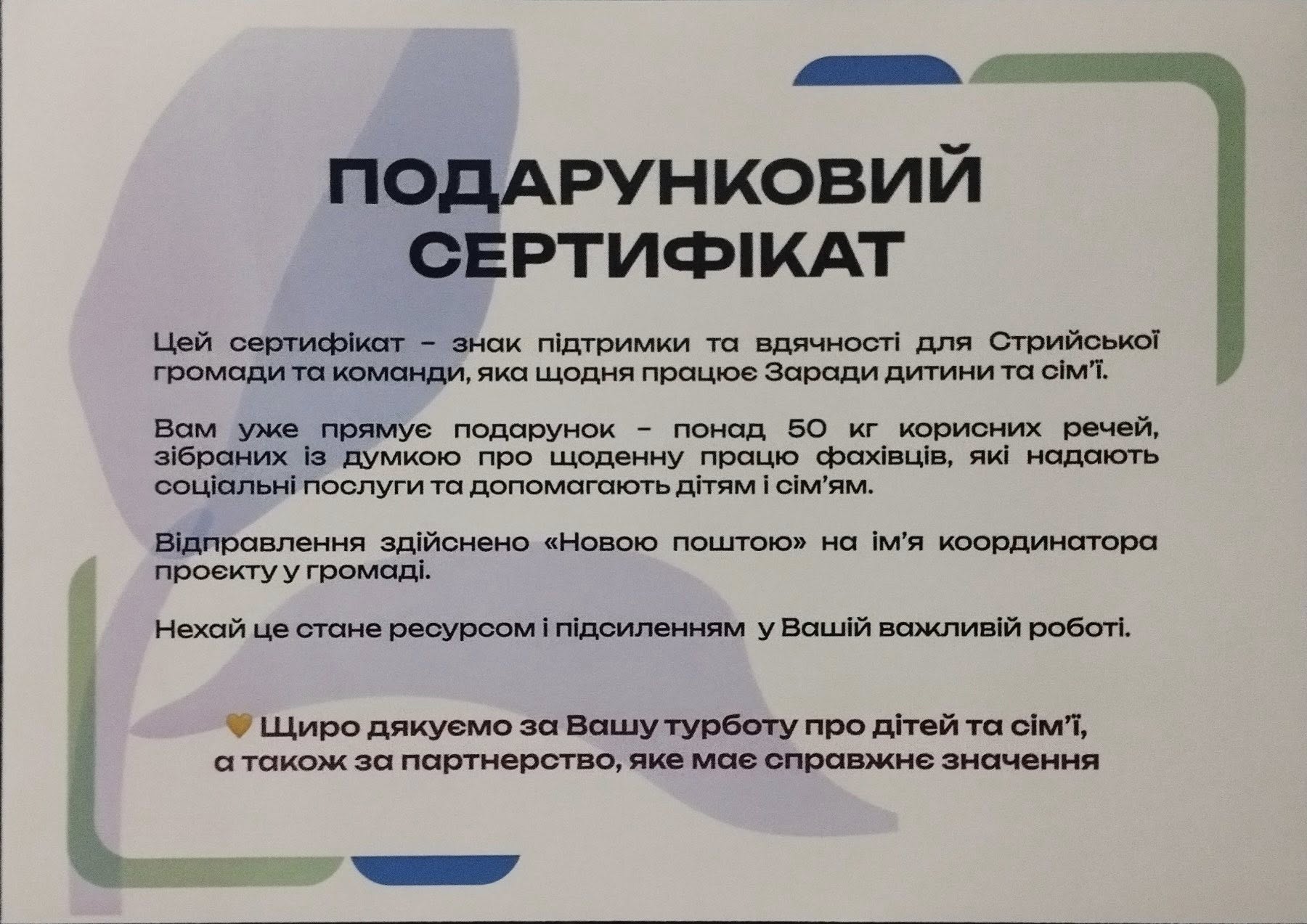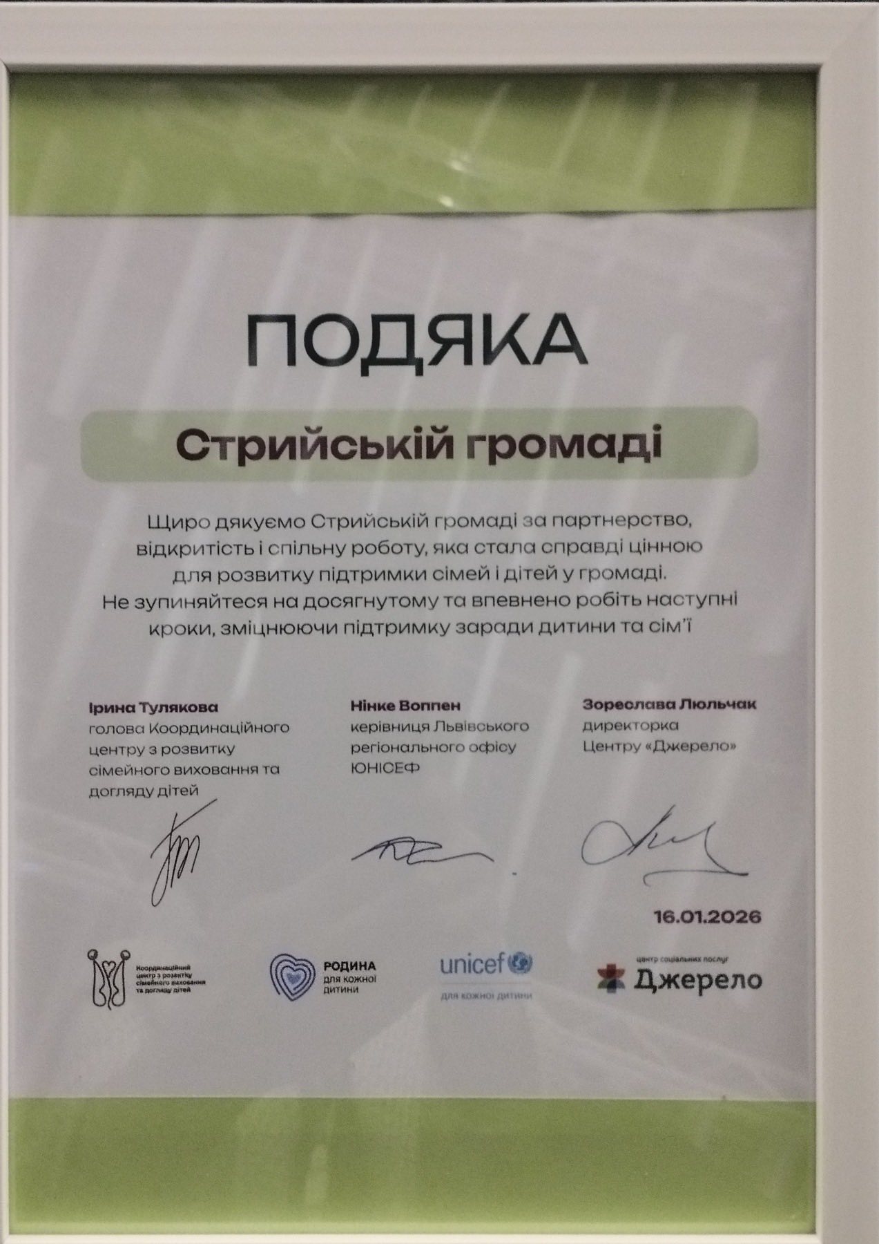 Також у Львові відбувся великий «Форум заради дитини». Директорка Стрийського Центру надання соціальних послуг Олександра Думʼяк розповіла про розвиток соціальних послуг у громаді. Нінке Воппен, керівниця Львівського регіонального офісу ЮНІСЕФ вручила Стрийській громаді подяку та подарунковий сертифікат за партнерство.