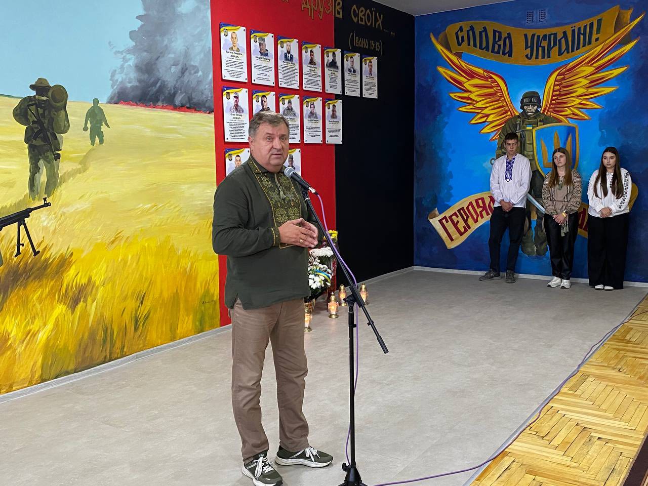 Зі словами підтримки та вдячності звернувся і міський голова Олег Канівець. Він разом з першим заступником Миколою Дмитришиним відвідали урочистий захід, щоб віддати шану загиблим Героям і підтримати ініціативу навчального закладу.