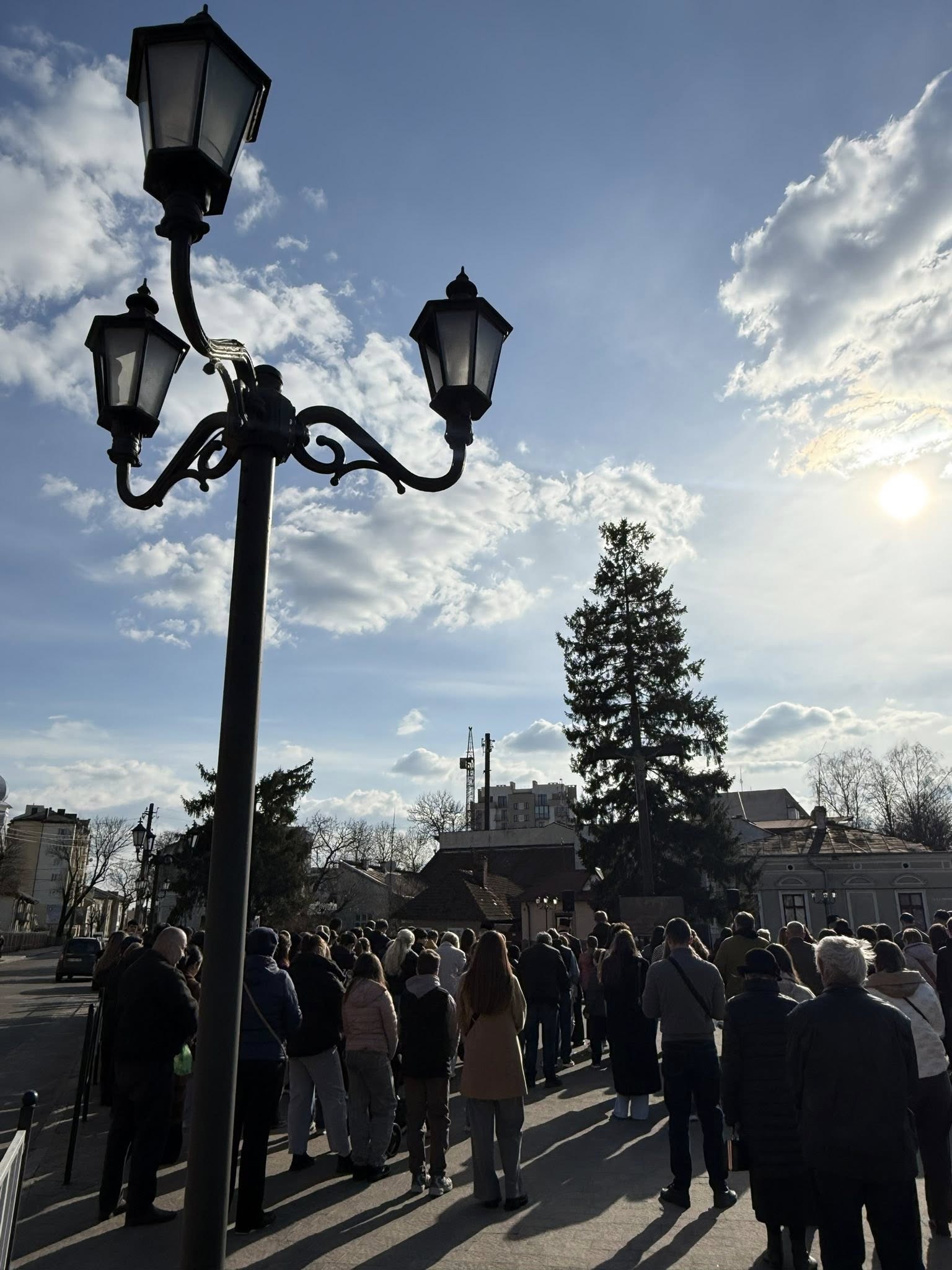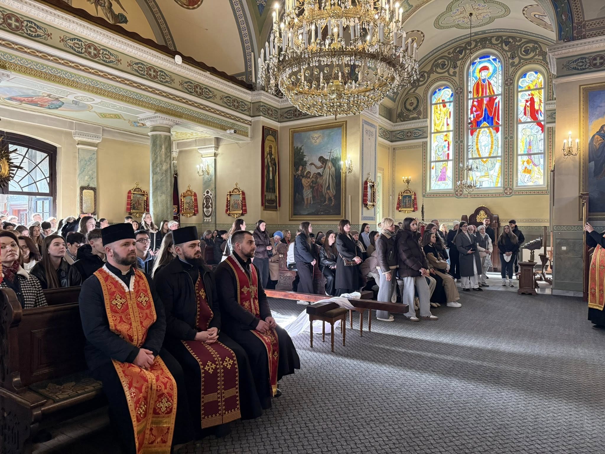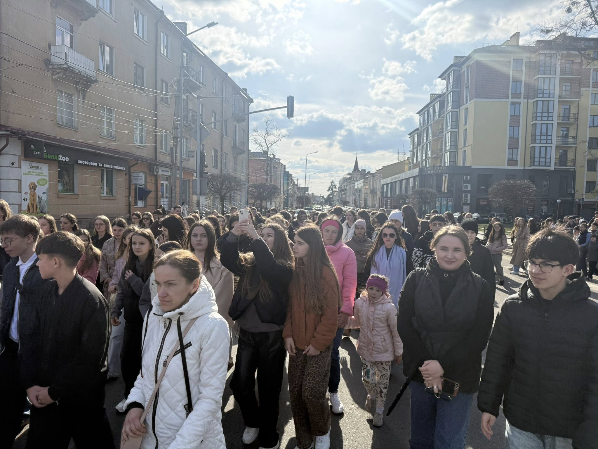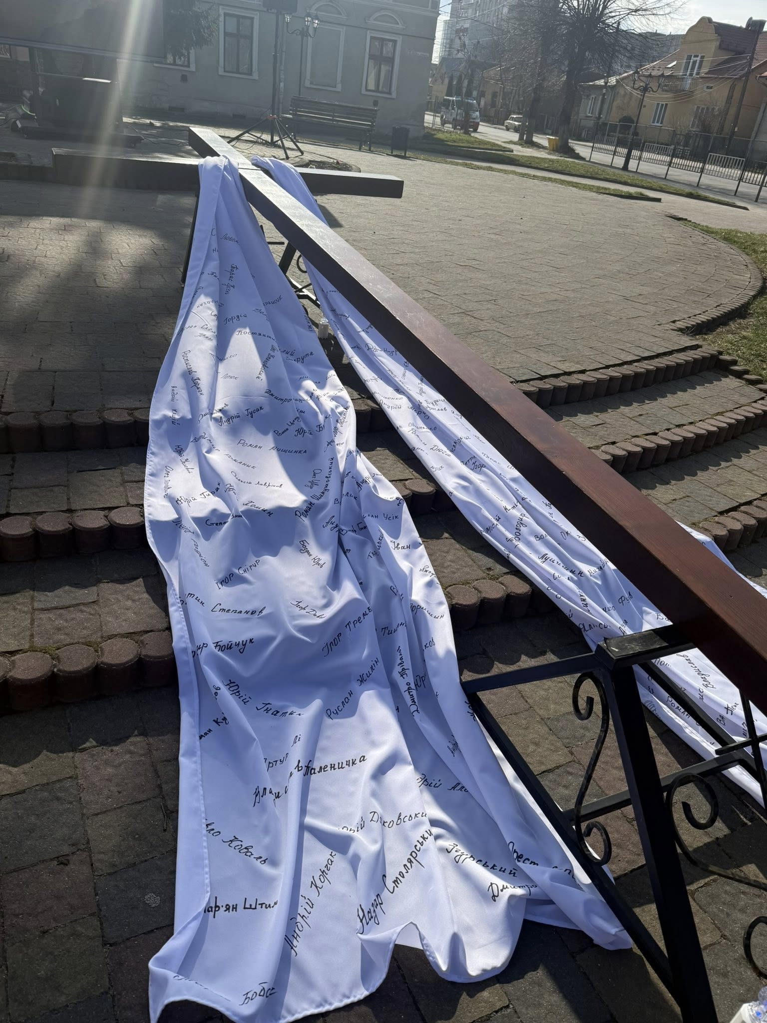Після благословення владики Тараса Сеньківа, молодь Стрийської єпархії взяла на свої руки дерев’яний хрест та полотнище з іменами загиблих Героїв і молились стації в наміренні за всіх, хто постраждав у сучасній війні.